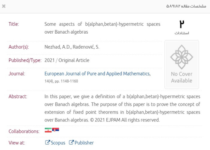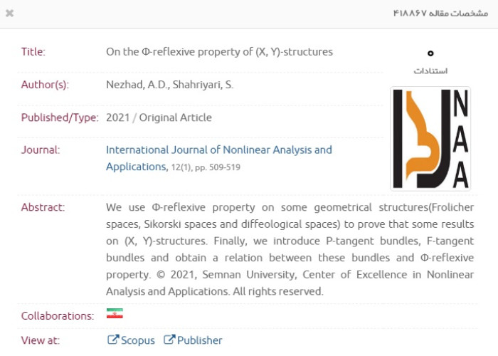 [27] Some non-trivial and non-gradient closed pseudo-Riemannian steady Ricci solitons, Journal of Mathematical Physics, Analysis, Geometry, Vol. 15, No. 4, 526–542, 2019. (M. Nadjafikhah, M. Jamreh)